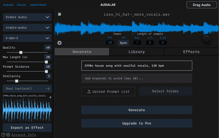 Describe the sound you want and Deep Sampler 2 generates it for you for free right in your DAW. Everything runs on your computer with no internet needed.